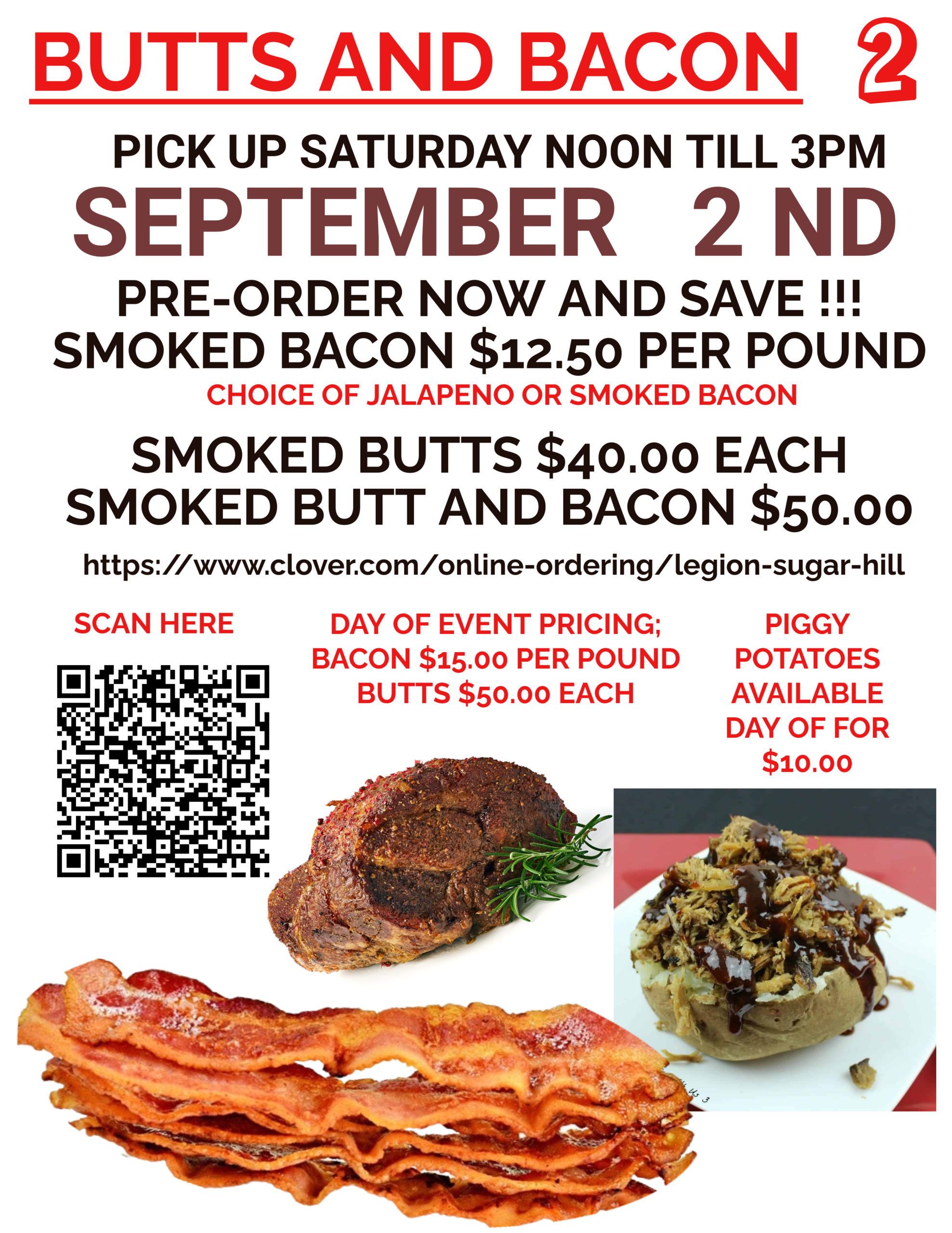 september, 2023 02sep12:00 pm3:00 pmButts and Bacon 2 Time(Saturday) 12:00 pm - 3:00 pm CalendarGoogleCal Leave a Reply Cancel replyYour email address will not be published. Required fields are marked *Comment * Name * Email * Website